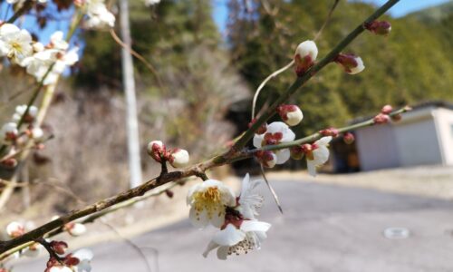 鱒渕茶園では梅の木に花が咲き始め気温だけでなく目からも春の訪れが感じられるようになりました。冬の間寒さに耐えた茶畑では新茶に向けて管理作業が徐々に始まっています。