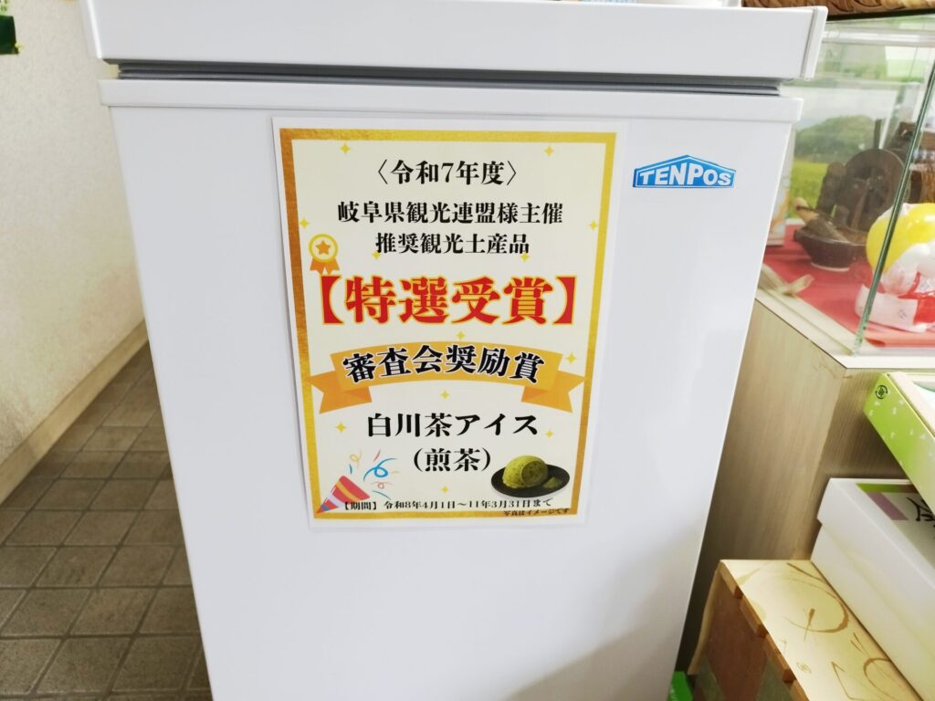 試作とテスト販売を行い、改良を重ねてきたますぶち園オリジナルの[白川茶アイス(煎茶)]ですが、昨年行われた令和7年度の岐阜県観光連盟推奨土産品の審査会において審査会奨励賞を受賞、同時に岐阜県観光連盟推奨土産品にも認定されました!!