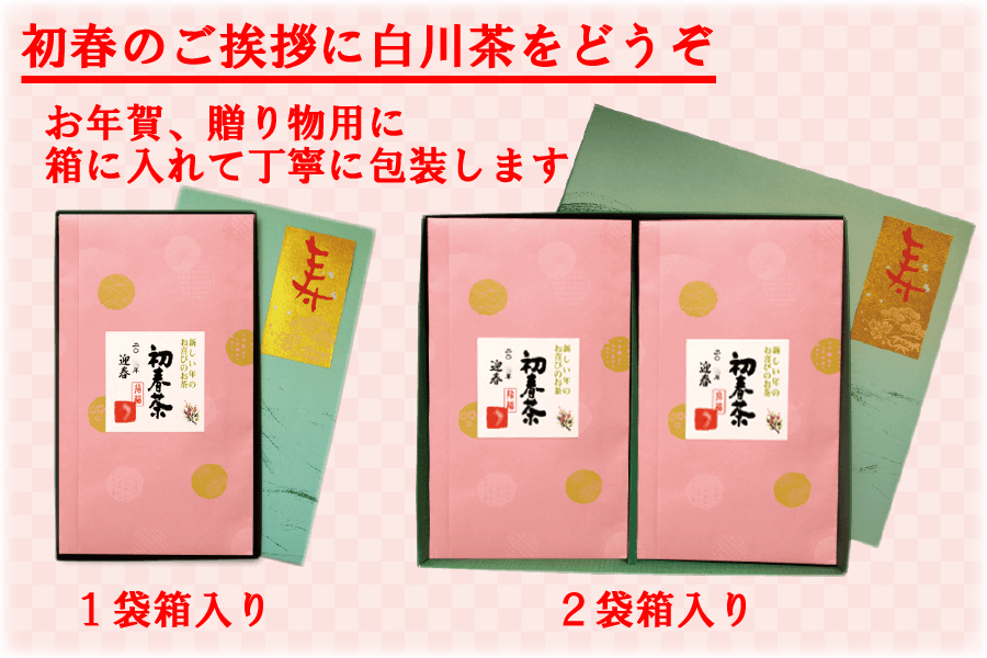 新年を迎え、ご家族でゆっくりとお召し上がりください。また、新年のご挨拶としてご贈答にもご利用いただいております。ますぶち園の蔵でじっくりと熟成し、うまみも一段と増した美濃白川茶にしっかりと火入れ(焙煎)をしています。火入れにより生まれる独特の甘みと香りが特徴のお茶です。